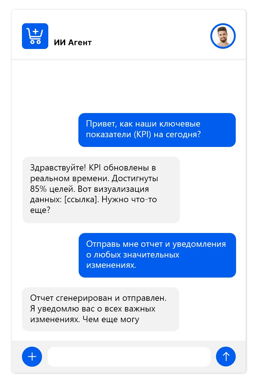 - Автоматическая генерация и отправка регулярных отчетов и сводок по ключевым показателям бизнеса.