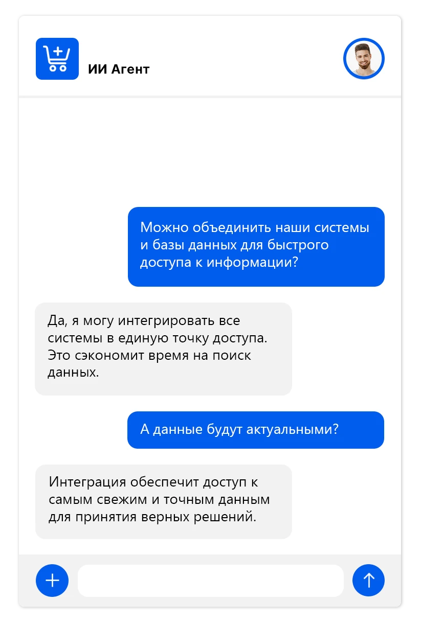 - Снижение времени на поиск информации благодаря интеграции систем.