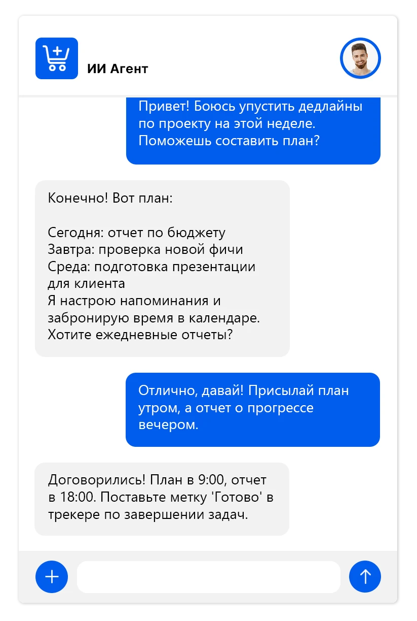 - Внедрение ИИ-агентов для выполнения повседневных задач и административных процессов.