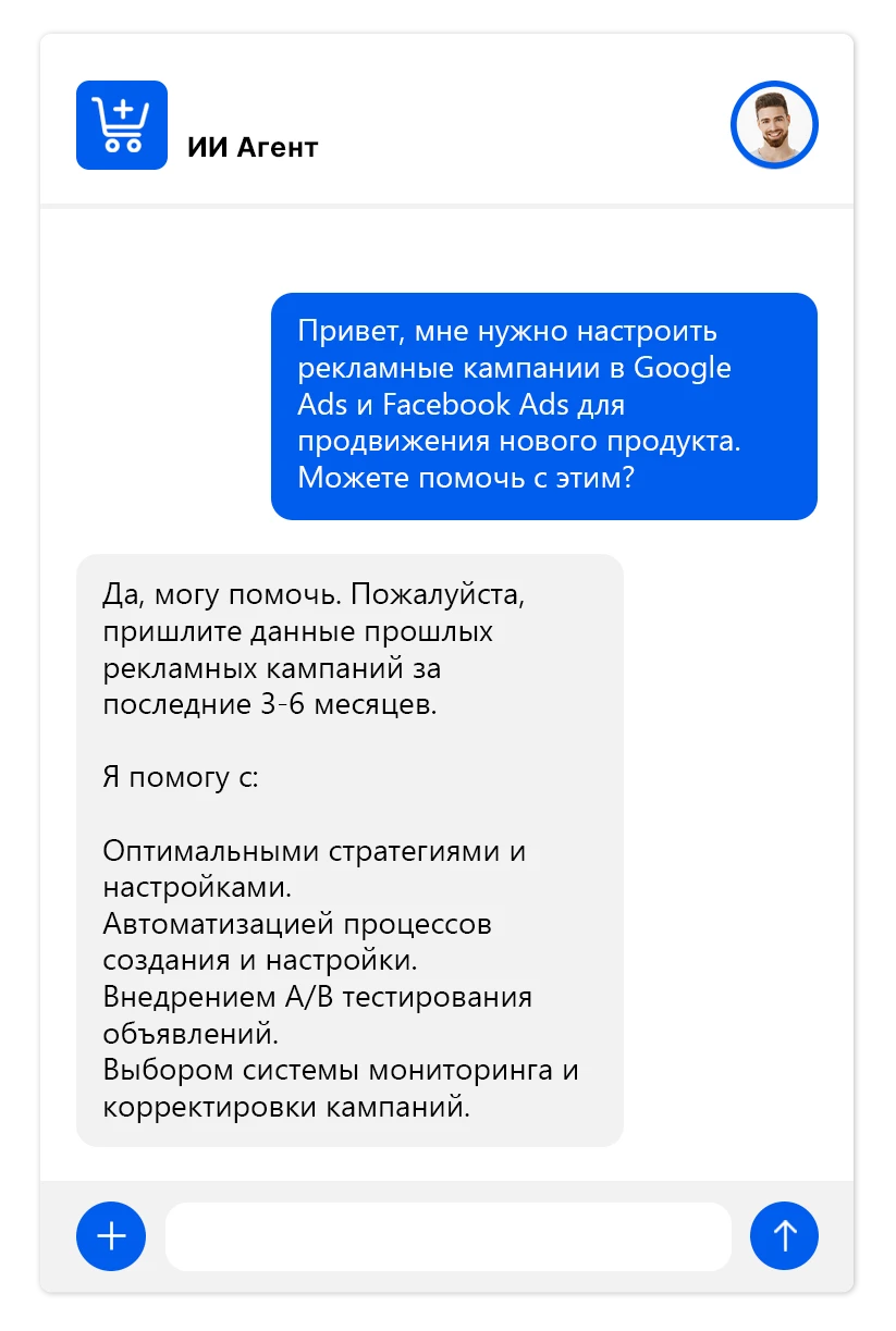 - Автоматизация настройки и управления рекламными кампаниями на различных платформах (Google Ads, Facebook Ads и др.).